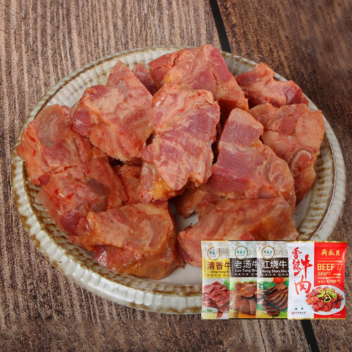经老汤卤料卤制,使其牛肉入味更深,满满一口令人心生满足。肉质紧实不绵软,富有嚼劲,跃动您的味蕾。