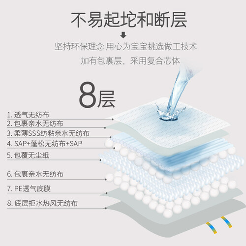 采用360度弹力腰围,多方位贴合宝宝腹部,不易脱落;选用柔软亲肤表层,能快速吸收,减少反渗;让宝宝更干爽舒适。