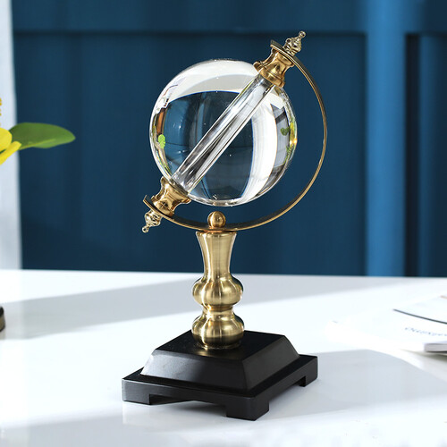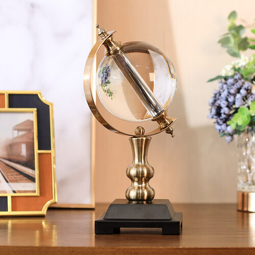 此款水晶球晶莹剔透,搭配地球仪外形,整体优雅厚重。底座运用了电镀合金工艺,光滑有质感,整体装饰性强,适合摆放在书房。