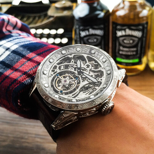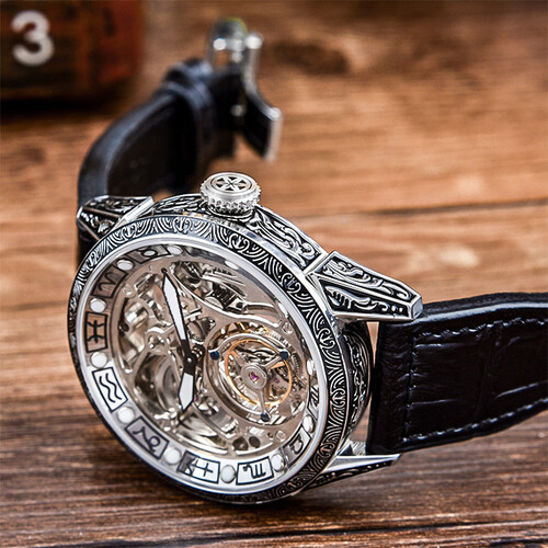 精致打造工序,带来良好耐用性。采用白色的指针设计,机芯运作状态一目了然,更加时尚。十二星座刻度,时尚个性。
