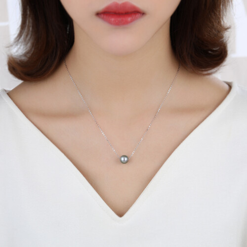经典的海水黑珍珠项链,简单的一条链子搭配一颗海水珍珠,简单却不失精美,搭配一件V领上衣,将你优雅的颈部曲线更好的显现。