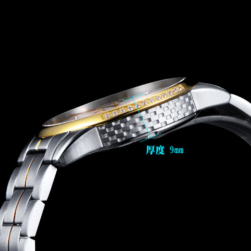 表圈上融入动人美钻,光芒持久都耀眼细腻,使用体验好。蓝宝石镜面,硬度高耐磨损,使用寿命持久,品质值得信赖。