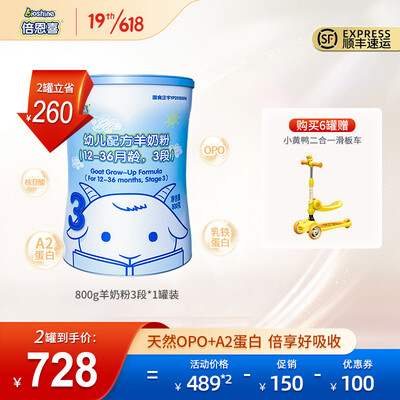 内含纯羊乳蛋白,羊乳含量高达74%,大大呵护宝宝成长发育。加上DHA+ARA脑黄金组合,有效地促进宝宝智力和视力的发育。