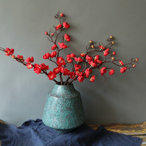 花瓣选用的是品质绢布制成,加以环保染料,让花瓣更为自然;梅花造型优雅简约,能轻松融入不同的家装风格,起到更好点缀的效果。