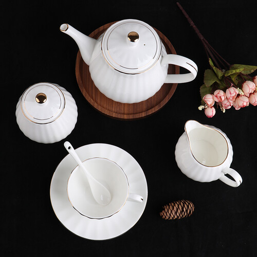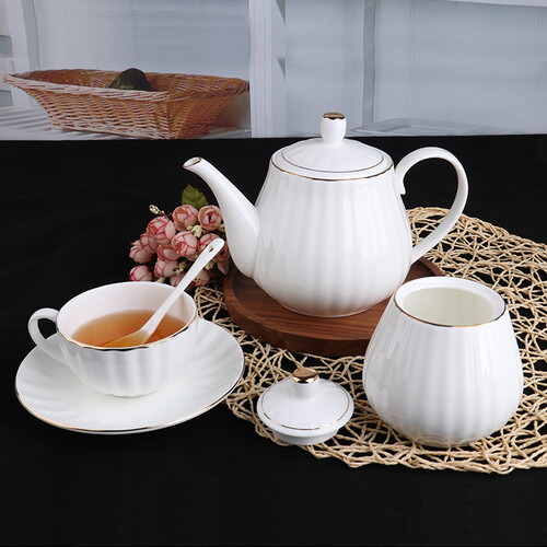 锦凤咖啡杯套装整体南瓜造型显得别具一格。优质骨瓷材质,表面润白细腻,触摸手感好。金边镶嵌,和白色搭配,显得典雅大气。