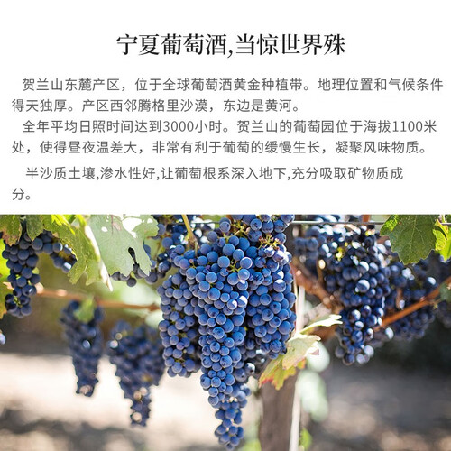 贺兰山东麓产区,优越的气候条件,葡萄粒粒果甜多汁。浅浅的桃红色酒液,满足您对颜值的追求。