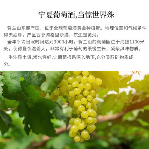 产自得天独厚的生长环境的葡萄,颗颗香甜酿制清新味道的葡萄酒。果香馥郁清新怡人,入口芳香四溢回味悠长。