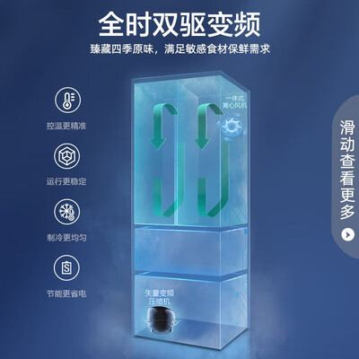 实时双驱变频,时刻都能品尝美味,控温运行很稳定。加持大空间设计,分区安放很灵活,满足全家的存储需求。