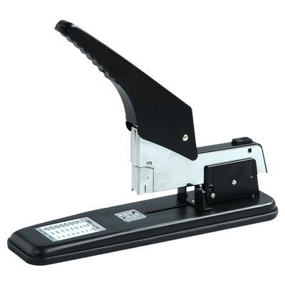 此款订书机采用入纸刻度设计,准确定位,有效提高办公效率;采用金属喷漆把手,实用省力,外观更加精致美观。