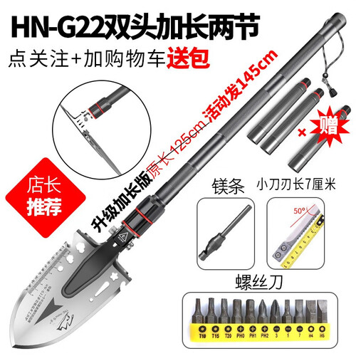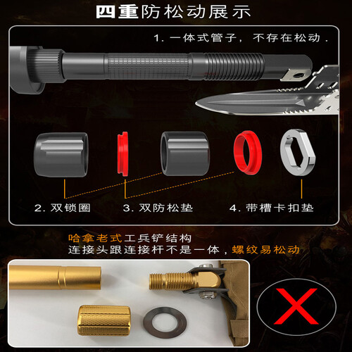 这款工具铲自带照明系统,可驾驭多种恶劣环境,是户外野营的小助手。全铝合金材质,拥有出色的硬度,更结实耐用。