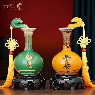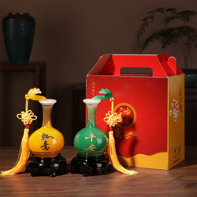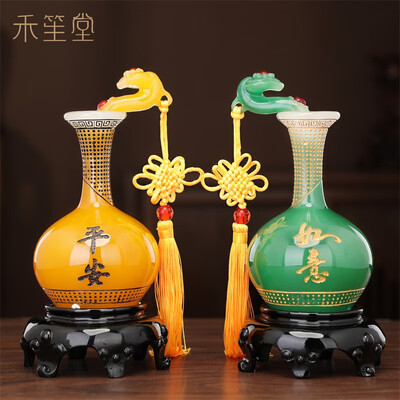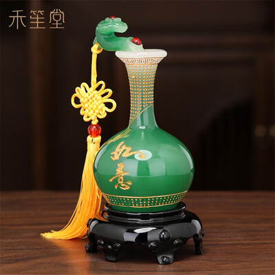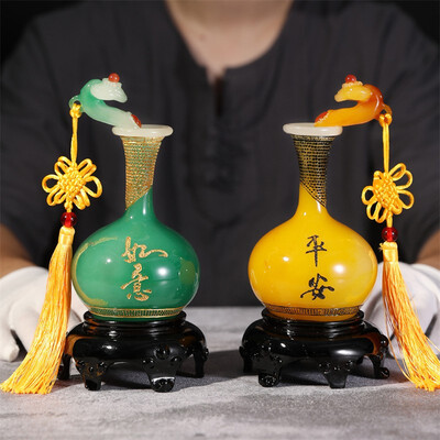 瓶口有如意从里面伸出,寓意吉祥如意事事顺心,可做为乔迁、开业礼物。底座造型凹凸有致古色古香,上色均匀站立稳固,做工精致。