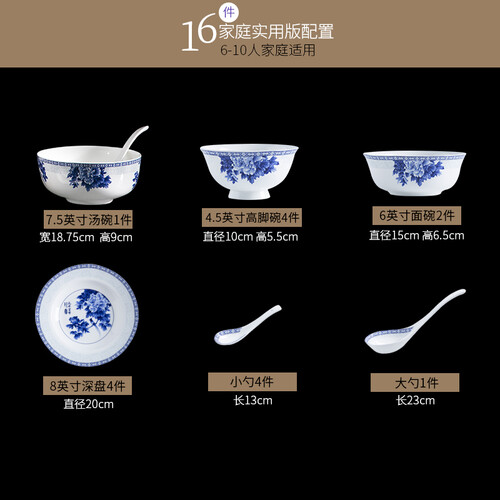 洛威餐具花开富贵系列,承启青花瓷韵,晶莹剔透,温婉雅致,润泽光亮,细腻通透,16头组合。