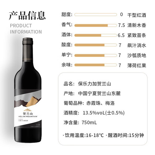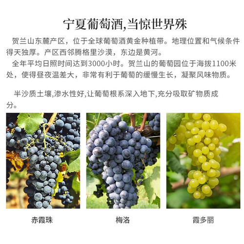 贺兰山东麓是中国具有国际影响力的著名产区,所酿出的红酒口感细腻经典。红酒产自全球知名葡萄酒和烈酒集团保乐力加,质量醇厚。