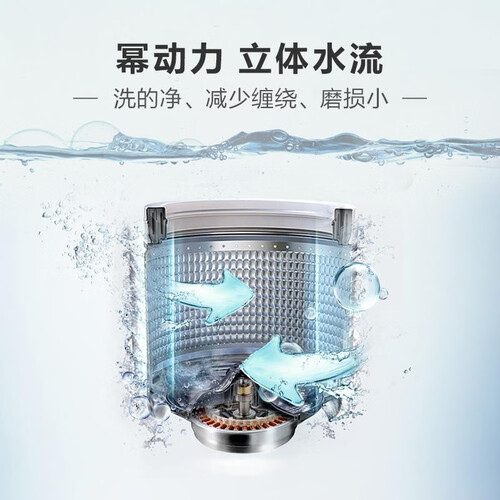 配备悬浮动力轮,能够形成托举水流,有效防止衣物缠绕。拥有智能称重系统,可以根据衣物多少自动调节水量。