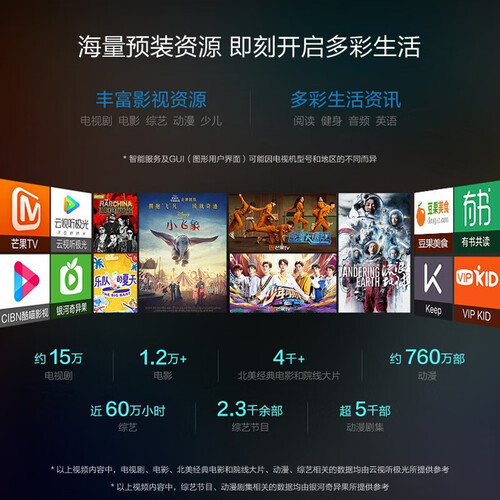 采用动态加速技术,对动态画面进行自动补偿,带来流畅画面表现。内置多个热门视频软件,丰富的在线资源,让你尽享娱乐时间。