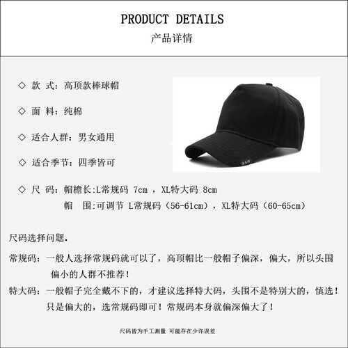 佲库 高顶大码棒球帽