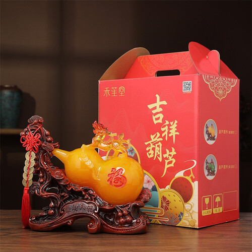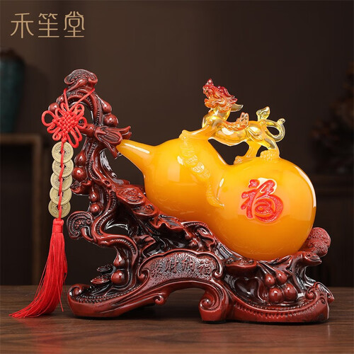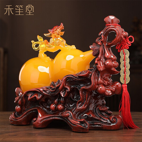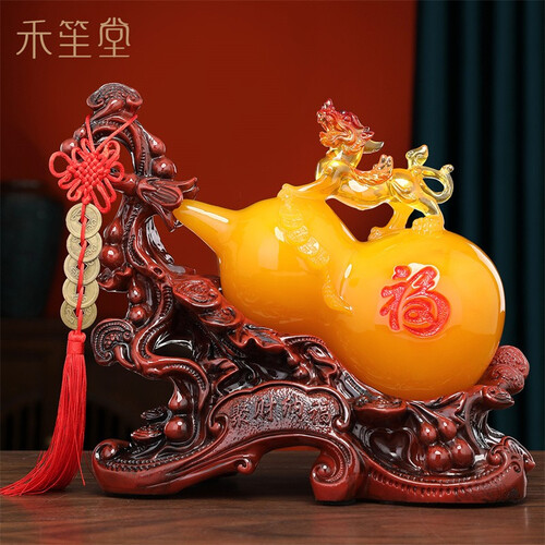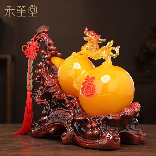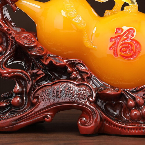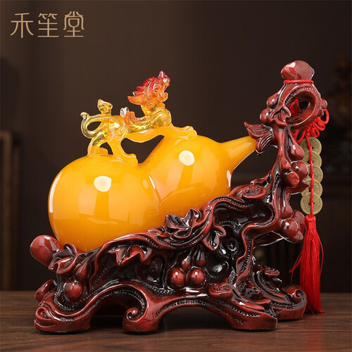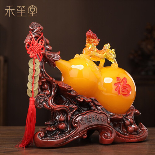底座细节处理到位,摆放家中更显大气美观;玉葫芦由树脂打造,造型圆润色泽均匀,彰显品位;带有貔貅雕刻,寓意吉祥招财进宝。