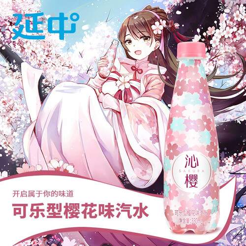 汽水采用造型独特的瓶身进行包装,并且瓶身图案粉嫩具有浓浓的少女感,花瓣清新靓丽,饮料液体浅粉透彻,樱花味道清香淡雅。