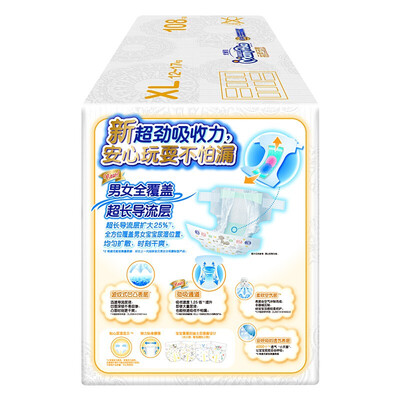 此款纸尿裤采用超长导流设计,吸收尿液更多更迅速,全面包裹宝宝肌肤;双通道瞬吸层,快速瞬吸,保持表层干爽。