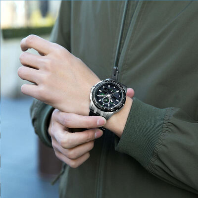 表镜采用矿物强化玻璃镜面制作,防刮耐磨,透光性好,助力清晰读时。黑色表盘加持立体小窗与表眼,潮流炫酷,时尚好搭配。