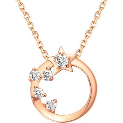 选用18K金材质锻造而成,材质坚硬不易掉石。星星和钻石围绕着串联在一起,象征着爱情能够圆满的寓意。