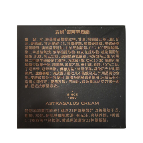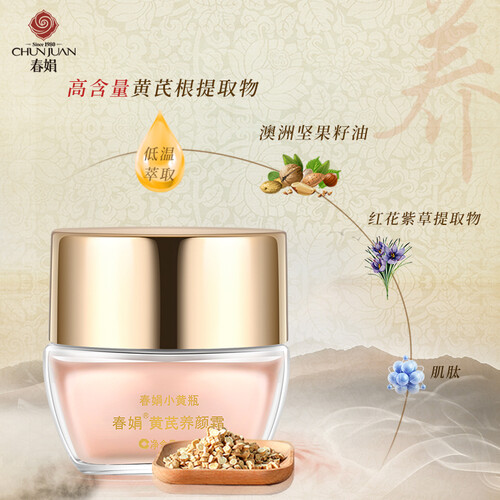 核心成分为陕西黄芪,能够提升气色,令人容光焕发。搭配紫草提取物、肌肽、红花提取物与澳洲坚果籽油,深层滋养肌肤。