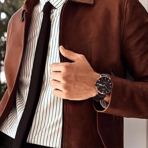 表镜采用蓝宝石玻璃材质打造而成,坚硬抗刮,不容易磨损刮花。优选牛皮材质的表带,佩戴十分舒适。
