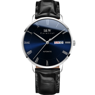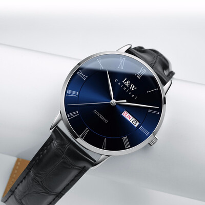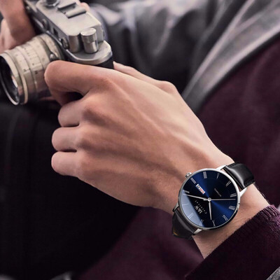 深蓝色盘面摆脱了视觉的单调感,优雅不失魅力。经典大三针立体感强,简约大方。表带选用牛皮材质制作,亲肤舒适。