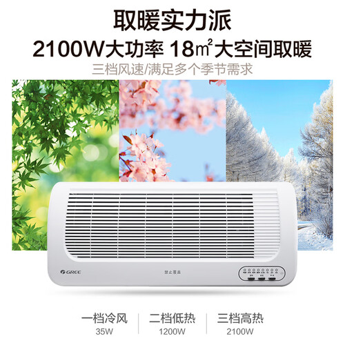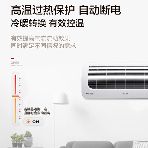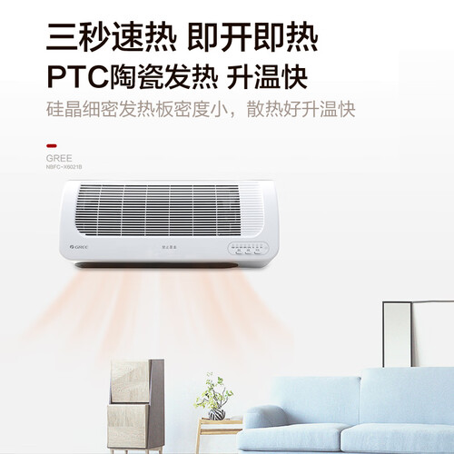 2100W大功率运转,搭配PTC陶瓷发热体,开机后升温迅速,满足大空间取暖。提供高温过热保护,有效控温自动断电。
