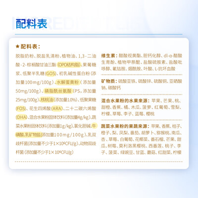 富含钙铁锌成分,不用额外在补充营养,满足人身体所需。并添加牛磺酸,可以促进视网膜,与神经细胞的发育。