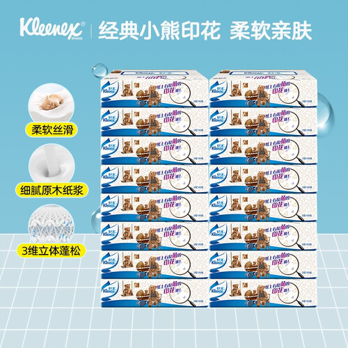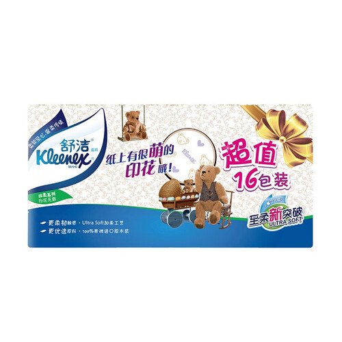 经过Ultrasoft加柔工艺处理,纸巾如同棉花般绵柔亲肤触感舒适。纸巾采用三维立体结构支撑,质地丰盈蓬松。