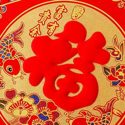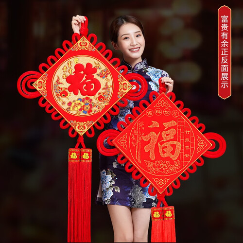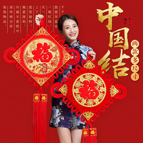 中国红绒布颜色鲜艳,不掉毛不褪色;采用烫金工艺,红金配色鲜艳大气,充满节日气息;加密流苏,翠丝紧密垂感好,自带方便挂钩。