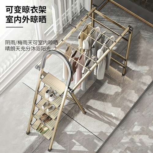 6脚配置,稳定性较好,不容易歪斜。多功能装置,可以晾晒衣服,即使是雨天也无需担心,轻巧可移动,全方位晒到阳光。