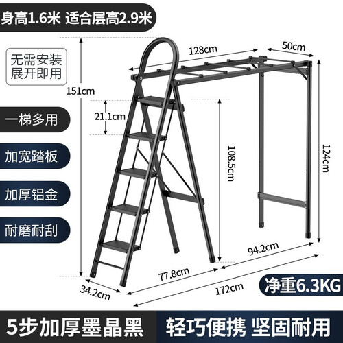 既是登高梯,也可当作晾衣架使用,功能齐全,比较适合小户型家庭使用。采用绝缘材质制成,维修电路也适用,不易发生危险情况。