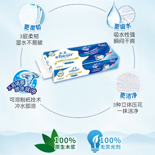 三种立体压花,凹凸有致且起到缓冲摩擦的作用。选取日本可溶制纸技术,冲水即溶不堵塞,减少病毒粪口传播。