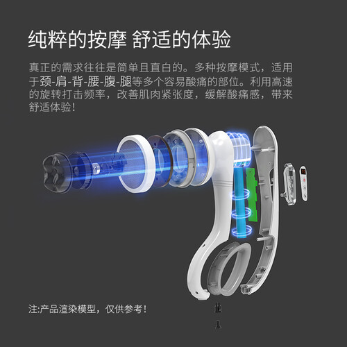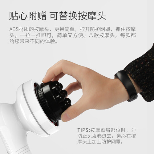 利用高速的旋转打击频率,令肌肉放松下来,从而达到缓解疼痛的效果。一推一拉的过程,即可完成按摩头的更换,操作异常简单。