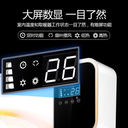 3000W大功率PTC发热体搭载大出风口,取暖面积更广,实现快速升温,秒速温暖全屋。大屏数字显示屏,工作状态一目了然。