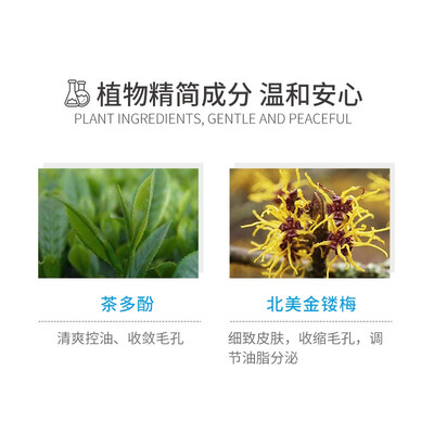 添加绿茶精华,横扫多余油脂,还你清爽美颜,减少痘痘生成,配以北美金缕梅水和尿囊素成分,舒缓不适肌肤,增强修护力。