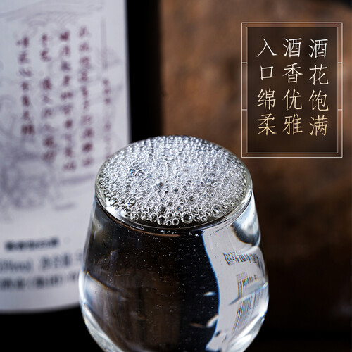 坚持纯粮酿造,酒液澄澈,入口浓厚醇香,口感细腻。柔润舒喉,酒花绵密,挂杯持久。家有喜事,举杯欢庆,其乐融融。