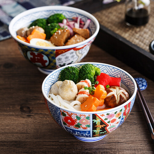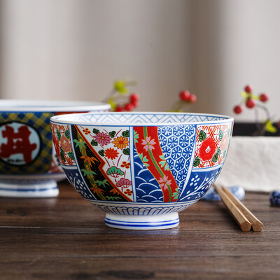 浓郁的日式和风纹,色彩艳丽,食欲满满。花枝锦簇点金成绘,图案别致,成就传统东瀛风采。高温烧制而成,瓷质细腻,质地浑厚。