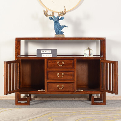 瑞呈堂的这款书架,特别将现代化的美学眼光与传统中式设计相结合,雕刻精美的栅栏柜门,若隐若现,余韵十足。