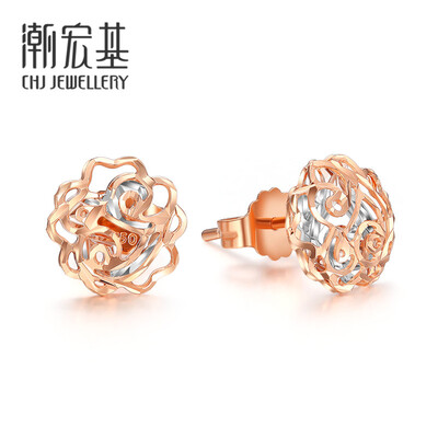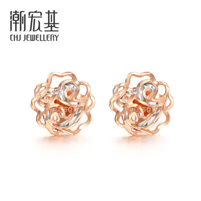 潮宏基 玫瑰金K金耳钉