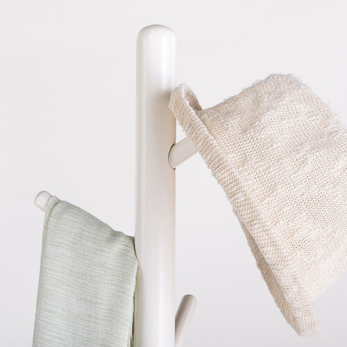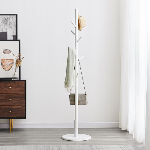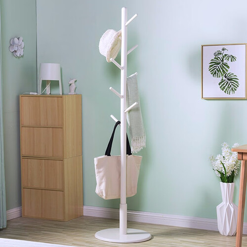 底座底部采用防滑垫片设计,防止衣帽架滑倒后伤人;主杆上采用8个挂钩设计,无论是挂帽子还是挂衣服都很合适。