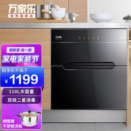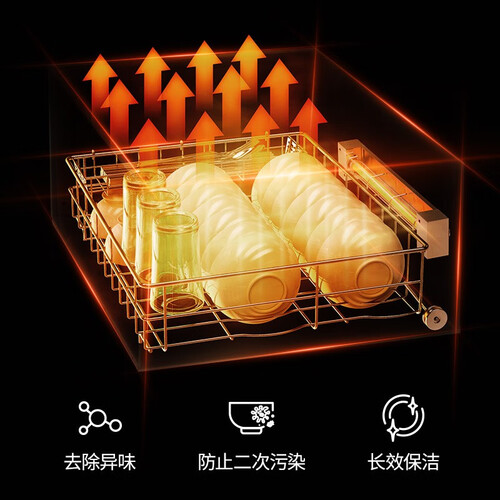 具有适用于耐热餐具的远红外线消毒,采用超高温。采用黑晶镜面面板设计,具有时尚风格,高端的质感。