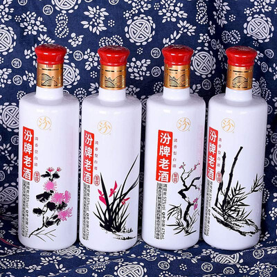 汾酒鉴赏汾牌老酒,酒体丰满细腻,香气馥郁,口感醇甜柔和。瓶身印有梅兰竹菊四君子,寓意高洁品质,收藏送礼皆宜。