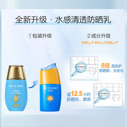 SPF50+,加倍防晒呵护,满足您夏日出行的防晒需求。质地清爽水润,富含烟酰胺美白成分,带给您保湿美白又防晒的加倍效果。