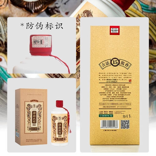 沿用200年的酿酒工艺,经十五年窖藏而成。酒液色泽微黄,入喉圆润适口,饮后唇齿生香,沁人心脾。