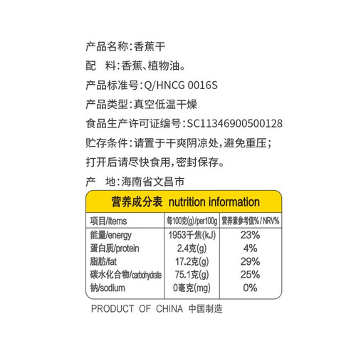 精选自然成熟的新鲜香蕉,其果肉丰富味道香甜,真空低温干燥工艺保留营养成分,更有利于长期保存。