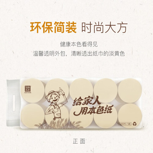 温馨透明的外包装,清晰地透出纸巾的淡黄色。这是采用天然小麦秸秆原生浆制成的纸巾,无漂白剂,无化学残留,只为你的健康着想。