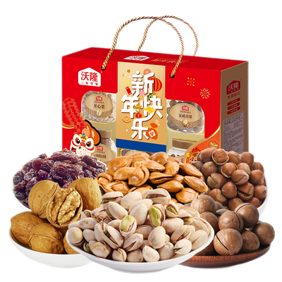 汇聚开心果、核桃和黑提干等6款坚果果干,分量足口味多。礼盒精美大气,更有新年快乐字样,年节礼送亲友更显你的真挚心意。